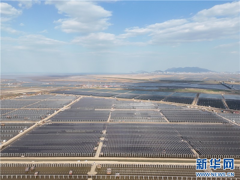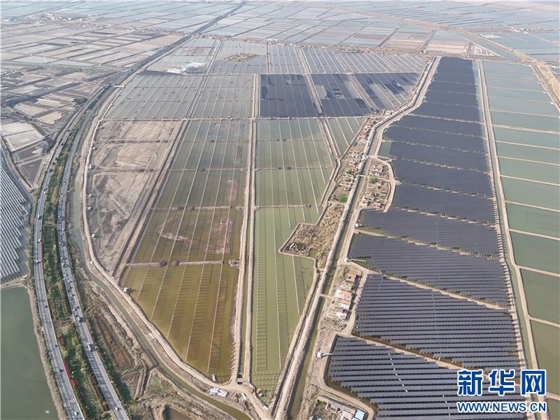 近日,在連云港經(jīng)濟技術(shù)開發(fā)區(qū)猴嘴街道三峽青口鹽場,近78萬塊光伏板如波浪般起伏,深藍色板面倒映著魚塘的波光,蔚為壯觀。