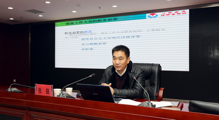 為進(jìn)一步幫助廣大干部職工筑牢思想道德防線(xiàn),預(yù)防職務(wù)犯罪,12月28日上午,集團(tuán)公司舉行廉潔履職警示教育專(zhuān)題報(bào)告會(huì),邀請(qǐng)江蘇田灣律師事務(wù)所副主任張強(qiáng)作廉潔履職專(zhuān)題報(bào)告。集團(tuán)公司領(lǐng)導(dǎo)班子成員,各單位領(lǐng)導(dǎo)班子成員、三級(jí)法人單位黨政負(fù)責(zé)人、集團(tuán)總部全體管理人員參加報(bào)告會(huì)。