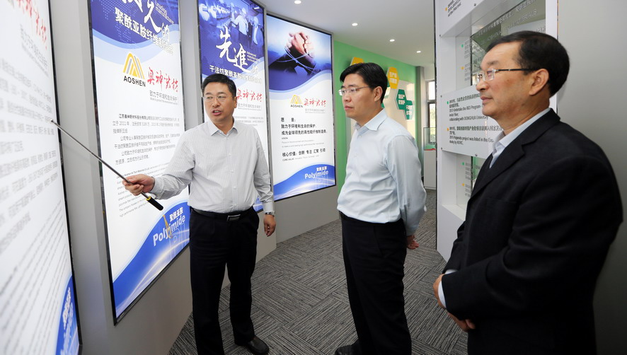 曹衛(wèi)東一行先后參觀了奧神新材料公司展廳和聚酰亞胺高性能纖維生產(chǎn)車間,并聽取了相關(guān)情況匯報,對奧神新材料公司的研發(fā)能力和高性能纖維產(chǎn)業(yè)發(fā)展成效給予了充分肯定。曹衛(wèi)東指出,奧神新材料公司成立五年來,以創(chuàng)新驅(qū)動轉(zhuǎn)型為動力,致力推進企業(yè)技術(shù)創(chuàng)新、產(chǎn)品創(chuàng)新和市場創(chuàng)新,取得了令人矚目的成績?!笆濉逼陂g,作為高性能纖維自主研發(fā)制造企業(yè)、聚酰亞胺纖維干法紡絲生產(chǎn)核心技術(shù)的掌握者,奧神新材料公司要進一步突出高、新、優(yōu)特色,切實踐行創(chuàng)新發(fā)展理念,加強自主知識產(chǎn)權(quán)保護,在聚酰亞胺纖維研發(fā)及生產(chǎn)方面著力突破新技術(shù)、提升創(chuàng)新力,推動產(chǎn)業(yè)高端化、規(guī)?;⒓刍l(fā)展,打造國內(nèi)一流的新材料產(chǎn)業(yè)基地,為推動連云港市纖維新材料產(chǎn)業(yè)發(fā)展做出新的貢獻。