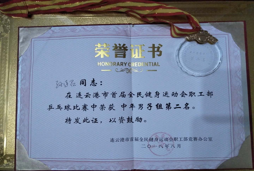 8月4日至5日,市首屆全民健身運動會職工部乒乓球比賽在神鷹碳纖維乒乓球館舉行,我公司選派3名運動員參賽。經(jīng)過五輪的激烈角逐,孫連召獲中年組亞軍。 另,集團公司獲“體育道德風(fēng)尚獎”。 (龔惠 王士超)