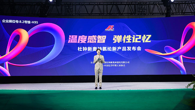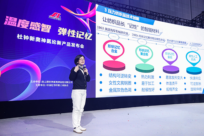 3月29日,連云港杜鐘新奧神氨綸有限公司“溫度感智,彈性記憶——杜鐘新奧神氨綸新產(chǎn)品發(fā)布會在國家會展中心(上海)精彩呈現(xiàn)。中國化學(xué)纖維工業(yè)協(xié)會會長陳新偉、中國化學(xué)纖維工業(yè)協(xié)會總經(jīng)濟(jì)師、氨綸分會常務(wù)副會長李增俊、江南大學(xué)教育部針織技術(shù)工程研究中心副教授萬愛蘭蒞臨現(xiàn)場,來自產(chǎn)業(yè)鏈的知名面料、服裝企業(yè)200余人參加了本次發(fā)布會,一起分享奧神創(chuàng)新研發(fā)成果,探索氨綸應(yīng)用新方向。