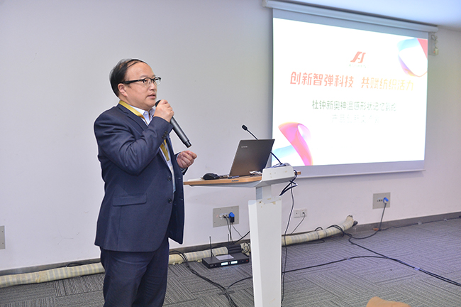 交流會上,杜鐘氨綸研發(fā)部曾登部長就奧神溫感形狀記憶氨綸的開發(fā)背景、產(chǎn)品特性以及應(yīng)用前景作了深入解析。參會嘉賓在對溫感形狀記憶氨綸有了較為清晰的認知和了解后,圍繞該產(chǎn)品的功能特點并結(jié)合自身產(chǎn)品開發(fā)方向,展開了一場智慧碰撞,對溫感形狀記憶氨綸的創(chuàng)新應(yīng)用提出了獨到的建議和暢想。