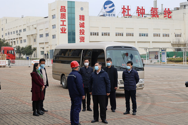 3月15日上午,市委常委、區(qū)黨工委書記商振江一行來氨綸公司檢查疫情防控和安全生產(chǎn)工作,總經(jīng)理張斌陪同調(diào)研。