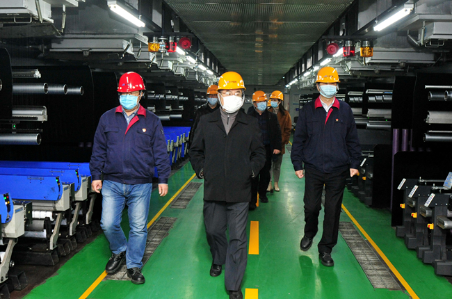 丁維杰一行參觀了展廳、八期生產(chǎn)線、自動(dòng)包裝線。張斌總經(jīng)理詳細(xì)地介紹了杜鐘氨綸的發(fā)展歷程,公司近年來(lái)研發(fā)的功能性氨綸的主要特點(diǎn)以及后道產(chǎn)品的開發(fā)與銷售。在隨后的座談會(huì)上,又重點(diǎn)匯報(bào)了公司近年來(lái)“三鷹”計(jì)劃人才培養(yǎng)方面取得的良好成效。胡書記具體匯報(bào)了公司深化落實(shí)產(chǎn)改工作的一些舉措。劉主席介紹了集團(tuán)層面上產(chǎn)改工作情況,他指出氨綸公司作為首批產(chǎn)改試點(diǎn)企業(yè),結(jié)合企業(yè)實(shí)際,不斷總結(jié)探索,創(chuàng)造很多可借鑒可復(fù)制可推廣的經(jīng)驗(yàn)制度,發(fā)揮產(chǎn)業(yè)工人隊(duì)伍建設(shè)改革的示范引領(lǐng)作用。