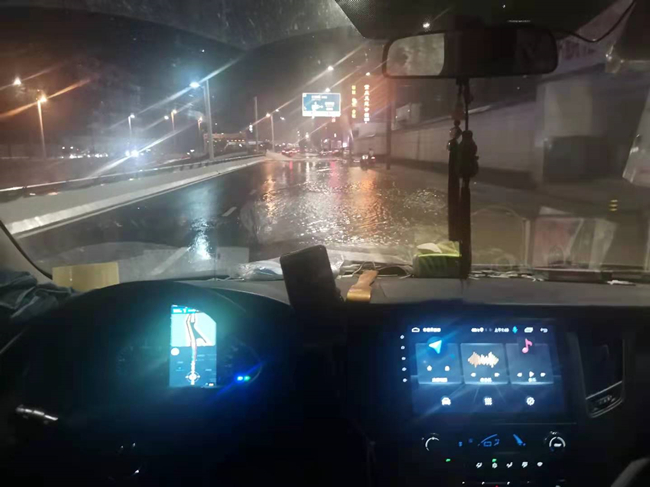 一路上,心急如焚,希望貨車能夠快點,再快點。路上不時遇到同樣掛著橫幅,滿載救援物資的車輛,他們來自祖國各地,大家很有默契的鳴笛互相致敬。剛剛還在享受著作為施救者的“小驕傲”,感受著來往車輛對我們的注目,但在我們到達鄭州的那一刻,親眼看到這個滿目瘡痍的城市時,我被震撼到了。雖然之前在網(wǎng)上了解到鄭州的受災情況,但真的沒想到印象中昔日繁華的街道成為現(xiàn)在的樣子,看到滿街報廢的車輛、無家可歸的人群、泥濘的道路……一份疼痛感油然而生。