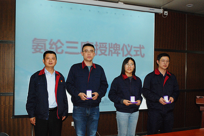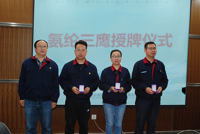 2021年5月12日下午,氨綸公司在1號會議室舉行“三鷹”授牌儀式。三鷹人才、各支部委員、勞模、五一勞動獎?wù)芦@得者等30余人參加了會議。公司黨委書記胡傳法、總經(jīng)理張斌、紀委書記劉殿龍出席了儀式。