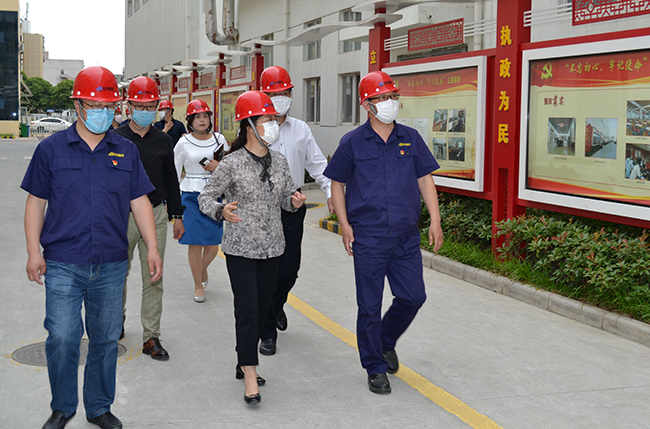 5月26日,連云港市總工會(huì)副主席秦云一行4人來氨綸公司蒞臨指導(dǎo)工作。工投集團(tuán)工會(huì)主席劉承志、公司黨委書記、工會(huì)主席趙萬明,公司總經(jīng)理張斌陪同調(diào)研。