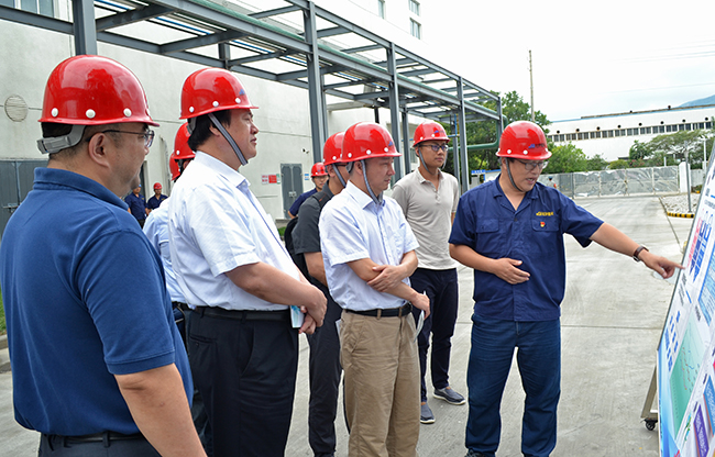 2019年8月12日,由省統(tǒng)計局副局長周國強帶隊的省政府能源消耗“雙控”目標現(xiàn)場考核組來我市考核走進氨綸公司。副市長徐家保、市工信局局長董作村、工投集團董事長楊龍陪同。