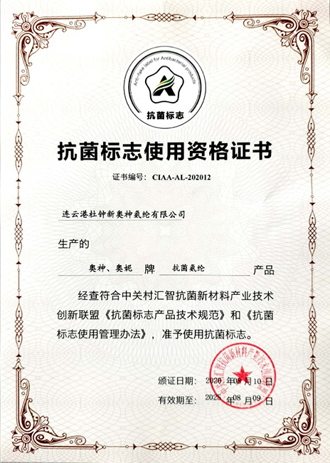 杜鐘氨綸作為CIAA會員,國內(nèi)唯一一家通過“抗菌標(biāo)志”認(rèn)證的氨綸供應(yīng)商,持續(xù)致力于疫情防護,為推動健康中國建設(shè),提高人民健康水平做貢獻。