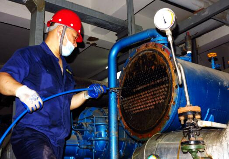 自主性:疫情期間,公用工程部自主維修小組根據(jù)八期冷媒機組運行狀況,判斷急需清洗冷凝器和油冷器的情況,緊急申請采購管道清洗設(shè)備,在無技術(shù)無培訓(xùn)的情況,攻堅克難,自加壓力,在較短時間內(nèi)熟悉和掌握清洗及使用技巧和方法,實現(xiàn)當(dāng)天內(nèi)完成冷凝器端蓋拆卸、換熱器管束清洗和復(fù)位調(diào)機工作,保證了生產(chǎn)運行的連續(xù)性。