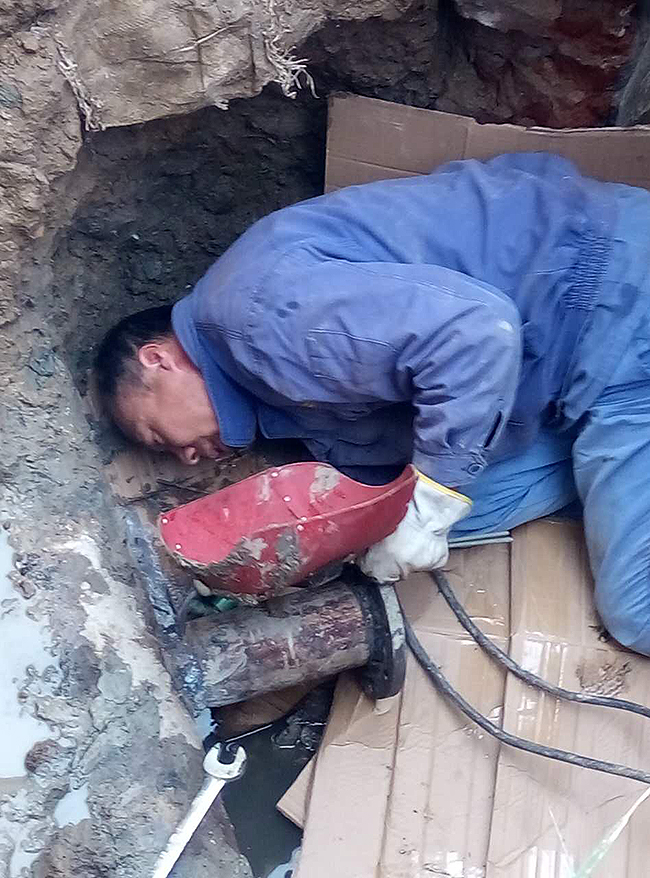 公司一期外檢門口的自來水管壞了了,維修班的焊工朱德科同志,不怕臟不怕累,下到井下,由于裂開的管線緊貼水面,朱師傅只能趴在井底,側(cè)身臥在潮濕的泥漿中。雖然衣服濕了、頭發(fā)被泥漿浸泡了,可他全然不顧,憑借高超的電焊技術細心維修。 吃飯時間到了,同事喊他吃過飯再干,朱師傅說:“干完再吃飯,可不能影響生產(chǎn)啊”。多么樸實的話語,這就是氨綸職工的縮影,這就是氨綸需要的精神 !