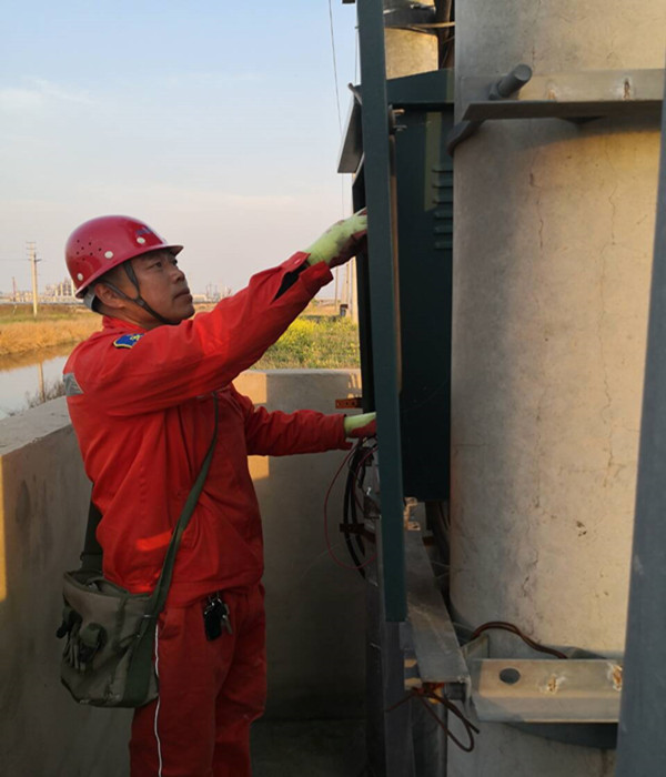 他,工作細(xì)致業(yè)務(wù)硬。多年來,他以所為家,幾乎沒有節(jié)假日和周末。不管是嚴(yán)寒酷暑,還是天氣惡劣,只要一有任務(wù),總是搶在前面,毫無怨言,風(fēng)雨無阻。一次,已經(jīng)在家休息的他接到所里搶修電話,立馬驅(qū)車前往現(xiàn)場。經(jīng)查看,勝利圩一個臺變的配電箱和變壓器起火,該臺變控制著附件1000畝魚塘和20戶居民的用電,如維修不及時,將造成魚塘缺氧,魚苗死亡,帶來巨大經(jīng)濟(jì)損失。為了將損失降到最低,他帶領(lǐng)班組成員,克服天氣熱,蚊蟲多等困難,一直奮戰(zhàn)到凌晨3點,終于更換完成損壞設(shè)備。