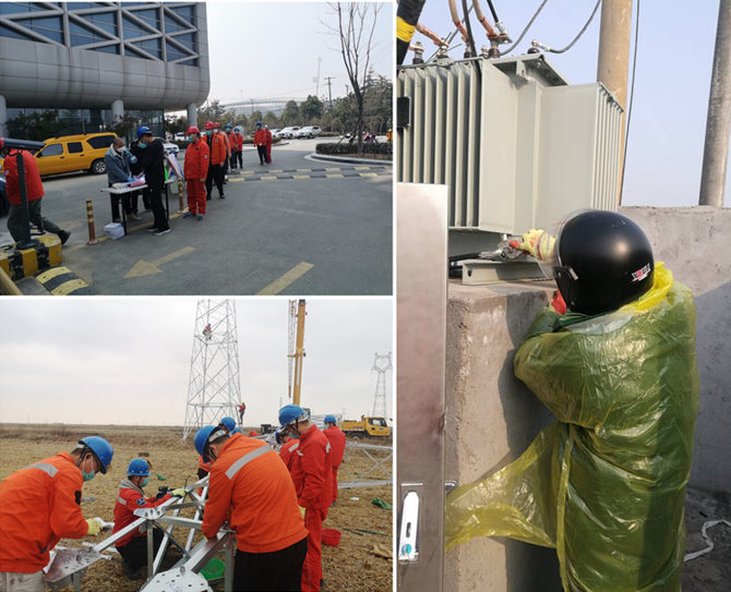 灌云益風風電35kV集電線路項目是公司首次自主安裝施工的重點推進項目。為最大程度降低疫情影響,公司積極與當?shù)卣块T溝通協(xié)調,堅決做到物資準備、現(xiàn)場管控、安全防疫“三到位”。3月19日,該工程正式復工,為全力趕超工期,施工現(xiàn)場工人師傅們爭分奪秒、加班加點,僅用6天時間,就完成了4基鐵塔的組裝,跑出了供電工程建設的“加速度”。
