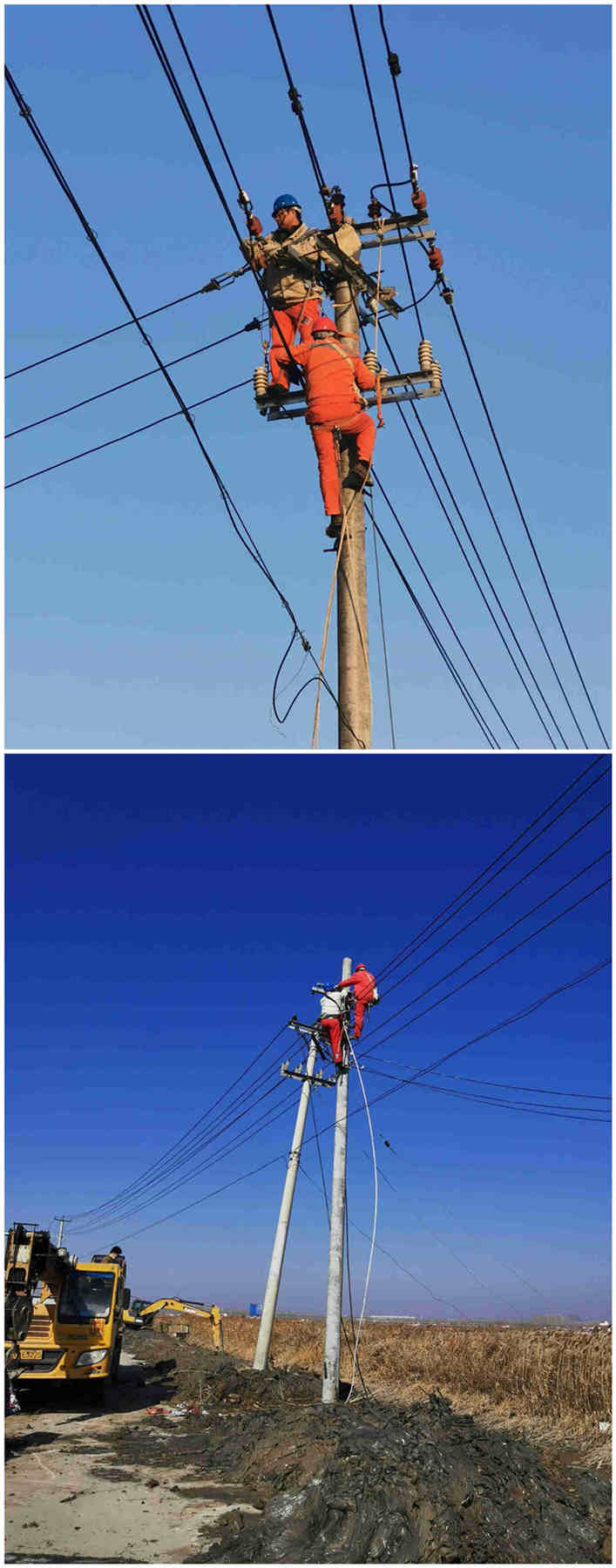 2月20日下午4點(diǎn)48分,青口供電所接到電話通知,黃沙分場(chǎng)送水道挖掘機(jī)施工碰倒10千伏養(yǎng)殖線電桿造成整個(gè)黃下線停電,請(qǐng)該所盡快派人處理。該所值班領(lǐng)導(dǎo)迅速組織線路工到達(dá)現(xiàn)場(chǎng),經(jīng)勘察發(fā)現(xiàn)12米3向轉(zhuǎn)角桿電桿碰斷一根,120高壓導(dǎo)線拉斷3根.。為了不影響其他用戶正常用電,果斷將養(yǎng)殖線斷路器分離,恢復(fù)黃下線其他線路正常供電。同時(shí)上報(bào)公司領(lǐng)導(dǎo),聯(lián)系機(jī)械及準(zhǔn)備搶修所需材料。當(dāng)下正值養(yǎng)殖池塘進(jìn)水期間,為了盡快恢復(fù)養(yǎng)殖線供電,2月21日早上7點(diǎn),搶修人員全部到位并進(jìn)行安全交底及人員分工安排。7點(diǎn)30分所有機(jī)械到位,進(jìn)行立桿、拔桿、地錨安裝、更換導(dǎo)線等系列工作。