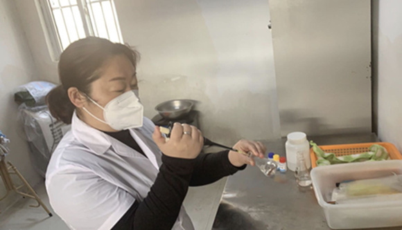 “疫情期間,每天都要隨機選取攤位進(jìn)行取樣,對蔬菜、水果、生鮮肉類、干制品等的農(nóng)藥殘留、非法添加物、濫用添加劑等進(jìn)行檢測,檢測項目涵蓋常見的食用農(nóng)產(chǎn)品風(fēng)險項目,俗話說民以食為天,所以一定把好群眾的‘入口’關(guān),讓居民吃得放心,這樣我的工作才有價值?!币咔榉揽孛钕逻_(dá)后,陸麗麗同志被巨龍農(nóng)貿(mào)市場服務(wù)中心安排負(fù)責(zé)市場內(nèi)的農(nóng)產(chǎn)品檢測工作,她放棄春節(jié)節(jié)假日休息,即刻上陣,每日對市場攤位農(nóng)產(chǎn)品進(jìn)行抽檢,全力把好入市食用農(nóng)產(chǎn)品質(zhì)量關(guān),維護銷售環(huán)節(jié)食用農(nóng)產(chǎn)品消費安全。