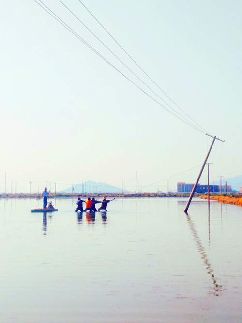 9月20日,該所組織人員進(jìn)行搶修。搶修人員經(jīng)過現(xiàn)場(chǎng)勘查后,發(fā)現(xiàn)隱患地點(diǎn)處于池塘中,搶修車輛等大型工器具無法到達(dá),只能靠人工搶修。在與魚塘養(yǎng)殖戶協(xié)商后,俞德春、楊祖加、楊新軍等搶修人員在對(duì)低壓線路采取停電、驗(yàn)電、掛接地等安全措施后,利用小木船來回穿梭、傳送材料,再跳入沒腿深的水里,將電桿扶正、加固。此時(shí),水面上的船、水中的人、拖拽的線路成了鏡頭中的新聞亮點(diǎn)。最后在經(jīng)過半個(gè)多小時(shí)的特色搶修后,成功恢復(fù)供電。(錢明華)