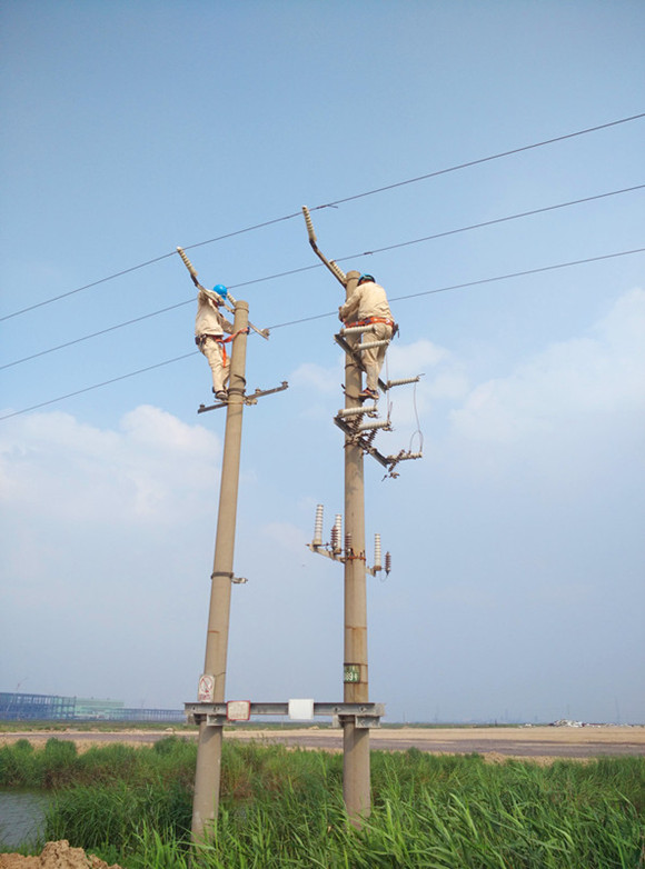 當天下午3點,該所值班人員接到報修電話,反映轄區(qū)珠江鋼管廠內(nèi)部的電桿上有導(dǎo)線脫落,存在安全事故隱患。根據(jù)初步了解的情況,該所立即組織人員趕赴現(xiàn)場。通過現(xiàn)場勘查,發(fā)現(xiàn)珠江鋼管廠內(nèi)的方南線87#桿-90#桿A相導(dǎo)線綁線脫落,同時高壓瓷橫擔上有放電燒黑的痕跡。經(jīng)分析認為,由于道路來往車輛超高,作用在導(dǎo)線上的力量過大,從而造成綁線斷裂,引起瓷橫擔歪斜、導(dǎo)線脫落。在查明原因后,該所立即制定搶修方案,做好安全防護措施,對脫落的導(dǎo)線進行修復(fù)并重新綁扎,確保綁定牢靠,前后僅用25分鐘就恢復(fù)了送電,及時處理了線路安全隱患。(錢明華)