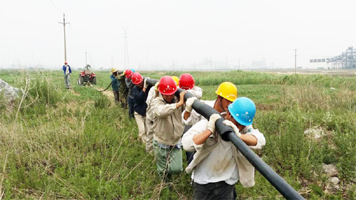 16日上午6點(diǎn)鐘左右,該所集合全部力量趕赴縱4路工程現(xiàn)場。在施工過程中,由于電纜線外套波紋管工作無法用機(jī)械完成,只能人工作業(yè)。該所除登高和外派作業(yè)人員外,其余人員密切配合,通力協(xié)作。他們不分工種、不計得失、不遺余力,喊著口號、邁著步子,用肩膀抗著波紋管,一步一個腳印,終于在中午12點(diǎn)成功將150米電纜套上波紋管。結(jié)束后才發(fā)現(xiàn)很多人的肩膀都磨出了淤血。為了搶在市網(wǎng)送電之前完成線路改造,該所在中午1點(diǎn)左右繼續(xù)趕工,最終在3點(diǎn)前將線路鋪設(shè)到位。(張偉孫維兵)