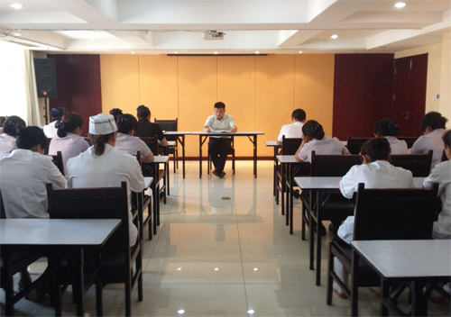 在培訓(xùn)中,陳總監(jiān)結(jié)合諸多事故案例,強(qiáng)調(diào)了預(yù)防食物中毒的重要性,讓參加培訓(xùn)的員工了解什么是食物中毒、容易引起食物中毒的食材主要有哪些、怎樣識別和防止食材霉腐變質(zhì)。餐飲部經(jīng)理郭天麗重點講解了食物中毒的幾種特征及一般急救方法。
