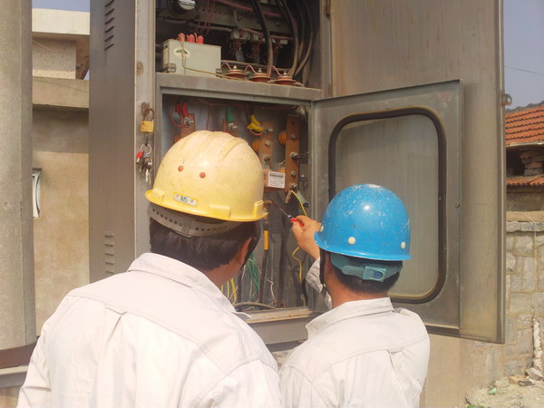 職工在巡視設(shè)備 近日天氣持續(xù)高溫,徐圩供電所為保證轄區(qū)內(nèi)用電戶正常供電,頭頂烈日,對供電線路、設(shè)備進行巡視、消缺,為高溫天氣下客戶用電提供可靠保證。 在巡視中,發(fā)現(xiàn)轄區(qū)內(nèi)辛控線101#變壓器電壓不足,容量不能滿足高溫下用戶需要,對居民生活用電影響很大。該所立即調(diào)換一臺125KVA變壓器,未收取增容費用,受到用電戶一致贊許。(馬德松)