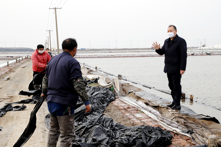 李國文首先來到日曬制鹽公司生產(chǎn)灘頭,現(xiàn)場察看復(fù)工復(fù)產(chǎn)情況。徒步灘頭,有的在補塑布、有的在修整廩基、有的在更換塑布,每個班組都在搶抓時間準(zhǔn)備春扒工作。隨后李國文先后前往西旺養(yǎng)殖池塘、明威田頭、宵洋物流碼頭,每到一處都詳細(xì)詢問職工口罩、消毒酒精等防護物資夠不夠用,有沒有外地回來的員工,并叮囑員工少接觸外地回來人員,錯開上下班時間,外出要帶口罩,保護好自己才能更好的為企業(yè)創(chuàng)造效益。