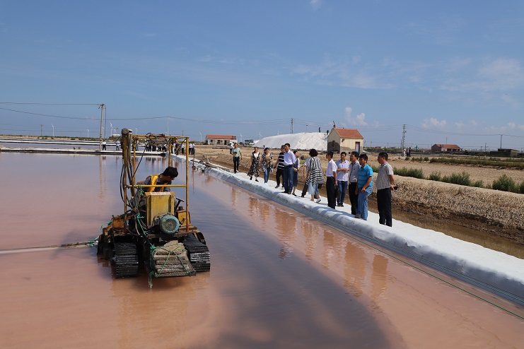 參觀團(tuán)一行先后到日曬制鹽埒南制鹽分公司八班扒鹽現(xiàn)場(chǎng)、新河制鹽分公司安樹(shù)林勞模創(chuàng)新工作室進(jìn)行了參觀,分別聽(tīng)取了相關(guān)情況的介紹,了解了日曬制鹽公司的生產(chǎn)工藝、生產(chǎn)流程、當(dāng)前的鹽業(yè)市場(chǎng)行情以及公司發(fā)展態(tài)勢(shì),并集中觀看了安樹(shù)林勞模創(chuàng)新工作室科技創(chuàng)新成果展示宣傳片。參觀過(guò)程中,參觀團(tuán)對(duì)我公司大力推進(jìn)科技創(chuàng)新,以科技推動(dòng)鹽業(yè)生產(chǎn)的做法表示肯定,特別是在發(fā)揮勞模示范引領(lǐng)作用方面取得實(shí)實(shí)在在的成果表示贊許。(封楊)