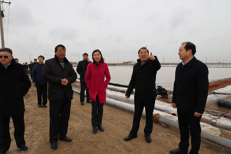 胡建明總經(jīng)理一行分別到原鈣液復(fù)曬區(qū)養(yǎng)殖池塘改造施工現(xiàn)場(chǎng)和新河制鹽分公司五班的扒鹽現(xiàn)場(chǎng)進(jìn)行實(shí)地調(diào)研,詳細(xì)了解工程的施工情況和日曬制鹽公司的生產(chǎn)情況。在原鈣液復(fù)曬區(qū),只見彩旗招展,幾臺(tái)挖掘機(jī)正在緊張施工之中,對(duì)灘地進(jìn)行養(yǎng)殖池塘改造,工程施工人員搶時(shí)間,抓進(jìn)度,爭(zhēng)取在養(yǎng)殖旺季來(lái)臨之時(shí),完成工程施工投入養(yǎng)殖生產(chǎn)。日曬制鹽公司目前已經(jīng)出動(dòng)五臺(tái)扒鹽機(jī)組投入到春季扒鹽工作中來(lái),預(yù)計(jì)上半年將完成25萬(wàn)噸的扒鹽任務(wù)。隨后在機(jī)關(guān)三樓會(huì)議室召開流動(dòng)辦公會(huì),投資公司董事長(zhǎng)李國(guó)文對(duì)灌西投資公司和日曬制鹽公司的生產(chǎn)經(jīng)營(yíng)情況進(jìn)行了匯報(bào)。他表示,2018年,灌西投資公司將積極迎接挑戰(zhàn),以“三超兩增一確保”為工作目標(biāo),產(chǎn)鹽58萬(wàn)噸,實(shí)現(xiàn)綜合利潤(rùn)翻一番工作任務(wù)而努力奮斗。同時(shí)也提出,公司當(dāng)前面臨原料礦鹵要漲價(jià)、原鹽一線員工年齡老化、職工小區(qū)房產(chǎn)證協(xié)調(diào)辦理等諸多發(fā)展難題,希望集團(tuán)公司領(lǐng)導(dǎo)給予高度重視。集團(tuán)公司領(lǐng)導(dǎo)相繼發(fā)言,現(xiàn)場(chǎng)辦公,針對(duì)各類問(wèn)題分別進(jìn)行了研討,提出建議,解決問(wèn)題。