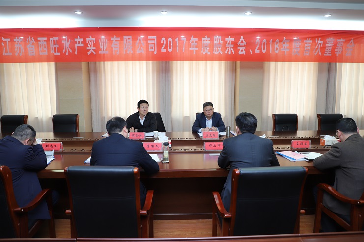 3月22日,江蘇省西旺水產(chǎn)實業(yè)公司2017年股東會、2018年第一次董事會在投資公司三樓會議室召開,省沿海開發(fā)集團(tuán)黨委委員、副總經(jīng)理周金陽,連云港市工業(yè)投資集團(tuán)黨委委員、總會計師匡友本等股東代表、董事代表出席了會議。