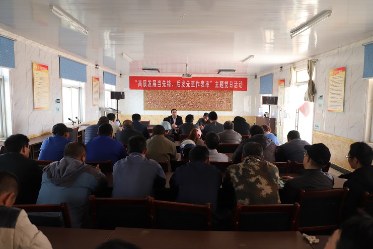 機關(guān)黨總支圍繞機關(guān)工作特點,組織黨員開展重溫入黨誓詞、老黨員為新黨員贈送新黨章、佩戴黨徽活動,并圍繞如何“高質(zhì)發(fā)展后發(fā)先至”這一要求做好服務(wù)生產(chǎn)工作進行了座談交流。
