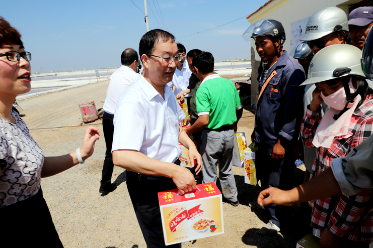 入伏以來,持續(xù)高溫,為確保一線生產單位工作順利開展,保證員工身體健康。7月18日上午,集團公司總經理胡建明、副總經理張其海一行深入日曬制鹽公司走訪慰問一線職工,把綠豆、飲料等慰問品送到他們手中,在炎炎夏季,為一線職工送去集團公司領導的深切關懷與陣陣清涼。
