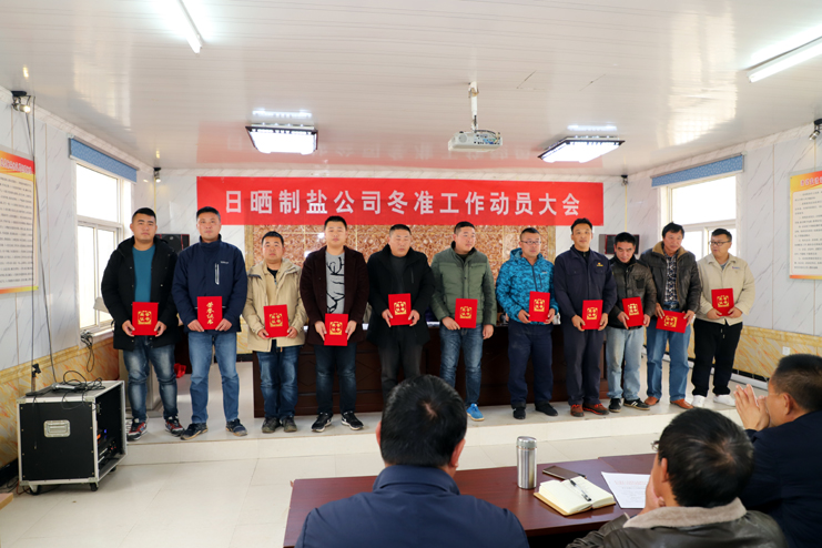 會前,與會人員一起現(xiàn)場參觀了埒南制鹽分公司9班的池道堰格,對硫酸鈣清理和土塘清淤工作作現(xiàn)場指導說明,隨后在生產(chǎn)服務公司會議室召開冬準動員大會,會議對冬準工作進行了全面部署,副總經(jīng)理古浩光對冬準工作提出要求,副總經(jīng)理張學峰宣讀了表彰“秋扒”工作先進機組先進個人和安全質(zhì)量標兵的決定,紀委書記、工會主席王宏宣讀了關于開展“大干冬準勞動競賽”活動方案,新河、埒南制鹽分公司四名班組長就如何干好冬準工作分別作表態(tài)發(fā)言。