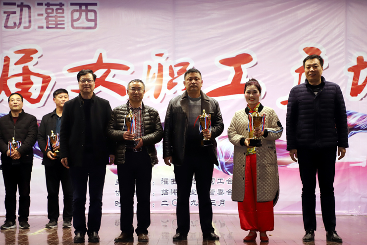 評委通過舞蹈編排、動作難度、服飾、音樂效果等評分標準,對8支廣場舞舞蹈隊表演的節(jié)目進行了打分,并評選出一、二、三等獎。灌西投資公司黨委書記、董事長、總經理李國文、副總經理古浩光、許太冬、王順友、紀委書記、工會主席王宏、總經理助理劉殿龍,西旺水產實業(yè)公司總經理茆慶軍等領導分別為獲獎隊伍頒發(fā)了獎杯。