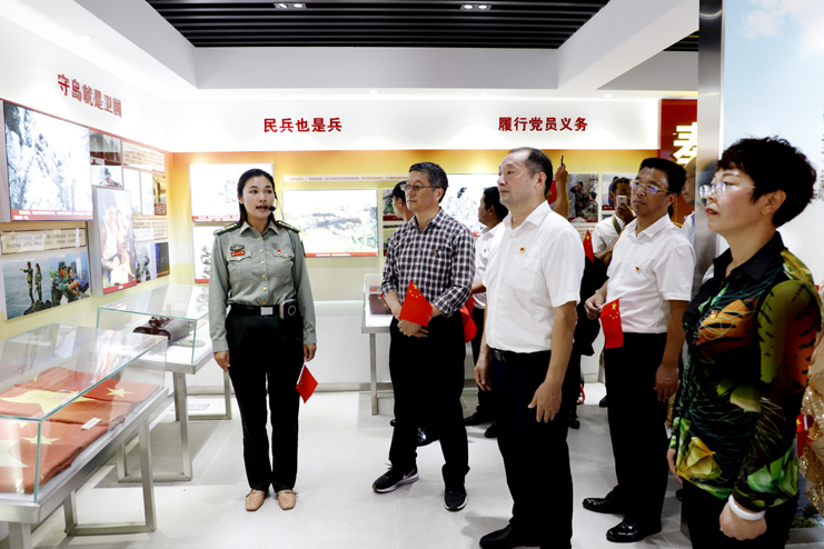 上午9點10分,隨著百名人員的陸續(xù)登島,往日寧靜的開山島突然熱鬧起來,紅旗飄舞,歌聲飛揚。沿著山梯而上,重走全國“人民楷模”、“最美奮斗者”、優(yōu)秀共產(chǎn)黨員王繼才同志生前的巡島路線,追尋英模足跡;參觀“開山島夫妻哨所事跡展示館”,瞭望臺、生活間和營房,實地感受王繼才夫婦在環(huán)境異常惡劣的開山島上,以島為家、與海為鄰,舍家為國、不畏艱險,32年如一日堅守海防事業(yè)的奉獻精神;在開山島最高處的國旗廣場上,黨員們一起觀看守島民兵升國旗,組織開展重溫入黨誓詞儀式,教育引導(dǎo)全體黨員不忘初心,牢記使命。