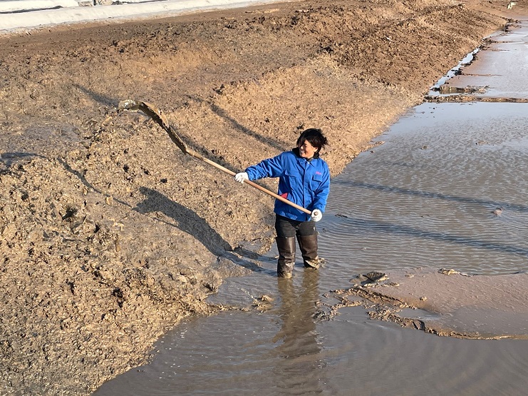 在制鹽生產(chǎn)一線(xiàn),印象中是男人的戰(zhàn)場(chǎng),那么和他們并肩在戰(zhàn)場(chǎng)上的女職工一定是女中豪杰。新河制鹽分公司十五班員工楊中華自2011年成為日曬制鹽員工以來(lái),一直堅(jiān)守在生產(chǎn)制鹽一線(xiàn),憑借過(guò)硬的基本功,成為公司首位星級(jí)員工,她經(jīng)常鞭策自己要堅(jiān)持不懈地奮斗,活碴、扒鹽、補(bǔ)塑料,女人能做的她能做,撈溝、做埝、清土塘,男人能干的他也能干,是名副其實(shí)的“全面手”。一年四季,她從未穿過(guò)漂亮的裙子,工作服、安全帽、勞保鞋就是她的標(biāo)配,烈日驕陽(yáng)下,風(fēng)雨瓢潑中哪里都有她的身影,作為女性有時(shí)確有諸多不便,但是她從沒(méi)把自己當(dāng)女人看,該干的工作照干,該往前沖的她決不后退,工作早已成為了她的樂(lè)趣,看似“自討苦吃”的努力,卻讓她百煉成鋼,為了扒鹽,她連續(xù)放棄二個(gè)月陪同兒子的美好時(shí)光,全力以赴做好扒鹽工作,在班長(zhǎng)生病住院期間,她挺身而出主動(dòng)挑起班里各項(xiàng)事務(wù),為班組的生產(chǎn)業(yè)績(jī)提供有力支撐。