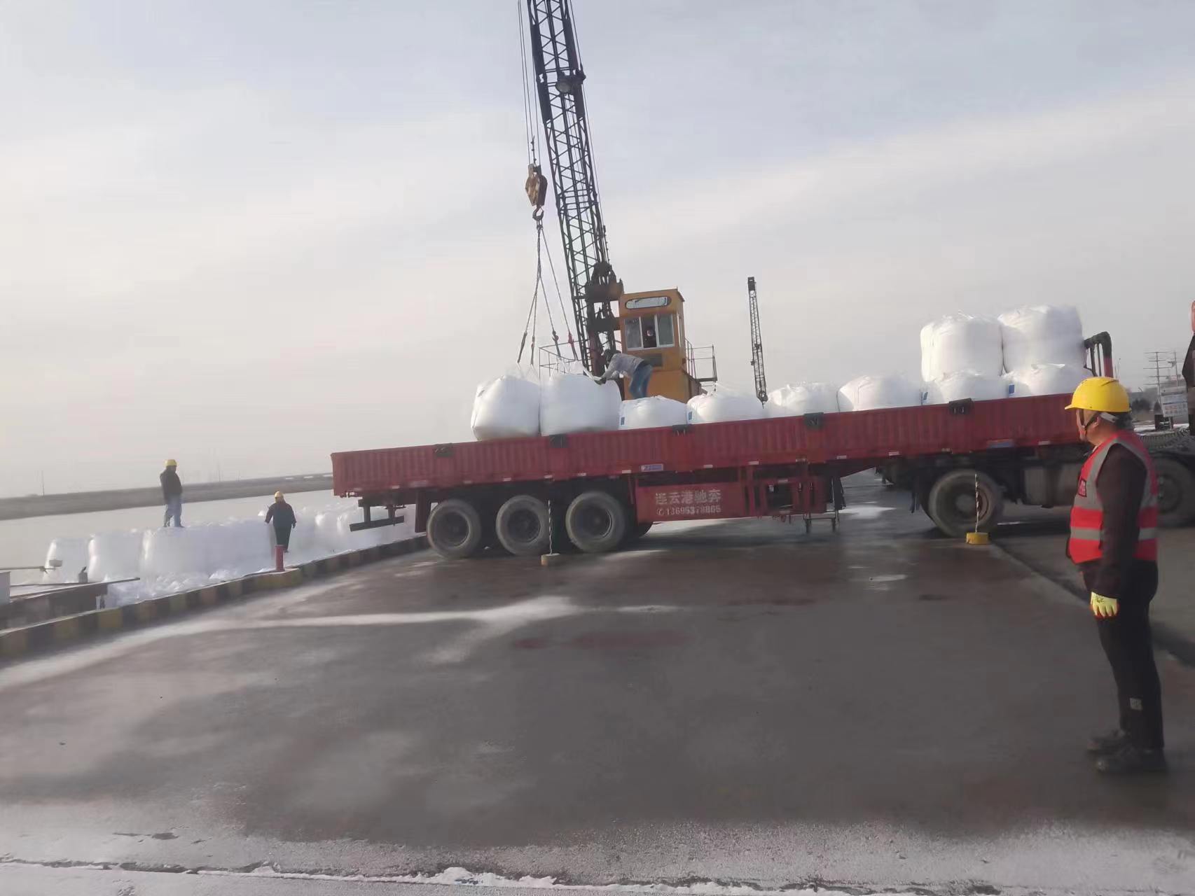 一個(gè)個(gè)白色的大包被吊裝到??吭诖a頭的貨船上,裝卸員工在熱火朝天的忙碌著,從卸船、裝車、掛鉤、堆碼,每個(gè)環(huán)節(jié)都細(xì)致入微。在碼頭一號塔吊的作業(yè)現(xiàn)場,土方駁運(yùn)也在施工操作,挖掘機(jī)舞動(dòng)長臂,旋轉(zhuǎn)作業(yè),機(jī)械設(shè)備有序運(yùn)轉(zhuǎn),轟嗚不息,安全員在現(xiàn)場管理,不時(shí)發(fā)出指令作業(yè),做好土方驗(yàn)收的同時(shí),提醒駕駛員在雨雪天氣,注意防滑,安全行駛,為順利完成年度100萬噸吞吐量奠定堅(jiān)實(shí)的基礎(chǔ),同時(shí)夯實(shí)來年碼頭高質(zhì)高效生產(chǎn)。(胡秀同)