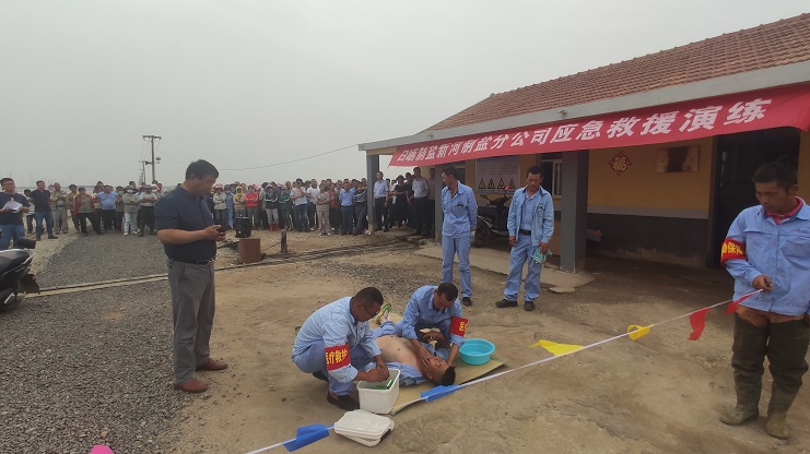 近日,新河制鹽分公司在新河0班開展高溫天氣防中暑應(yīng)急救援演練活動,投資公司領(lǐng)導(dǎo)、新河制鹽分公司管理人員、各班組長、工人觀看了應(yīng)急救援演練。