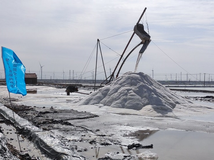 生產(chǎn)服務(wù)公司化驗(yàn)室的工作人員正在扒鹽現(xiàn)場(chǎng)取樣,及時(shí)跟蹤監(jiān)測(cè)鹽質(zhì),確保扒鹽質(zhì)量達(dá)標(biāo)。該公司今年在扒鹽設(shè)備上更換了五寸扒鹽管道。這次扒鹽計(jì)劃投入5臺(tái)扒鹽機(jī)組全部開始扒鹽,為原鹽銷售工作的正常有序開展提供保證。(方士洋)
