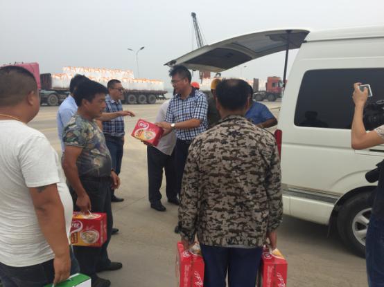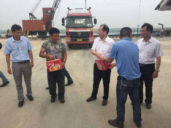 2017年7月18日星期二下午灌西鹽場(chǎng)投資公司領(lǐng)導(dǎo)到宵洋物流有限公司碼頭送清涼看望一線員工!在黨委書(shū)記董事長(zhǎng)王德志同志、總經(jīng)理李國(guó)文同志、工會(huì)主席王保平同志的帶領(lǐng)下親自到我宵洋物流有限公司碼頭看望一線員工,送清涼。炎炎夏日,酷暑當(dāng)頭一線員工永遠(yuǎn)沖鋒在前,領(lǐng)導(dǎo)的關(guān)懷更是永不停止!宵洋物流全體員工致謝!(宵洋王然)