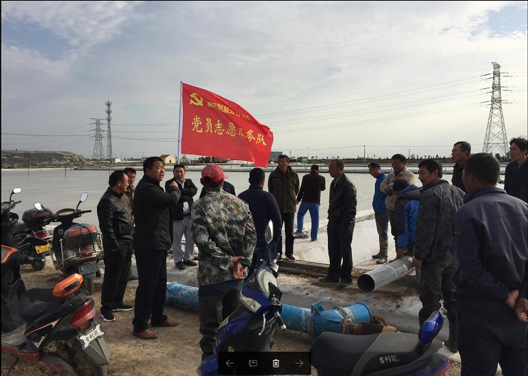 該公司八名黨員班長為展示支部黨員突擊隊作用,增強黨員標桿作用和服務(wù)意識,將鮮紅的支部黨員志愿服務(wù)隊旗插在了零班的灘頭。(新河制鹽 邱利民)