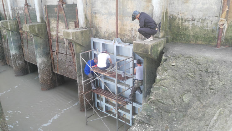 為確保機電設(shè)備運行正常,按時供好水,服務(wù)好海水養(yǎng)殖業(yè)。連日來,機電服務(wù)公司認(rèn)真組織好修理人員,對六圩閘站機電設(shè)備進(jìn)行修理維護(hù)。在市勞模、機修組長王緒華的帶領(lǐng)下,所有參加人員不怕臟和累,趕潮水,對水泵、閘門、啟閉機等進(jìn)行維修作業(yè)。該組有6名修理人員,其中有3名是黨員,1名黨積子,他們能身先士卒,發(fā)揮了黨員先鋒作用,二星級員工程洪連能吃苦在前,臟了3套工作服,都沒有心疼。經(jīng)過近2周時間維護(hù)修理,共修理155KW水泵2臺、啟閉機1臺,拆除木閘門、安裝鋼閘門各1塊、更新草擋2片。為正常開機揚水提供了保障。(機電服務(wù)公司)