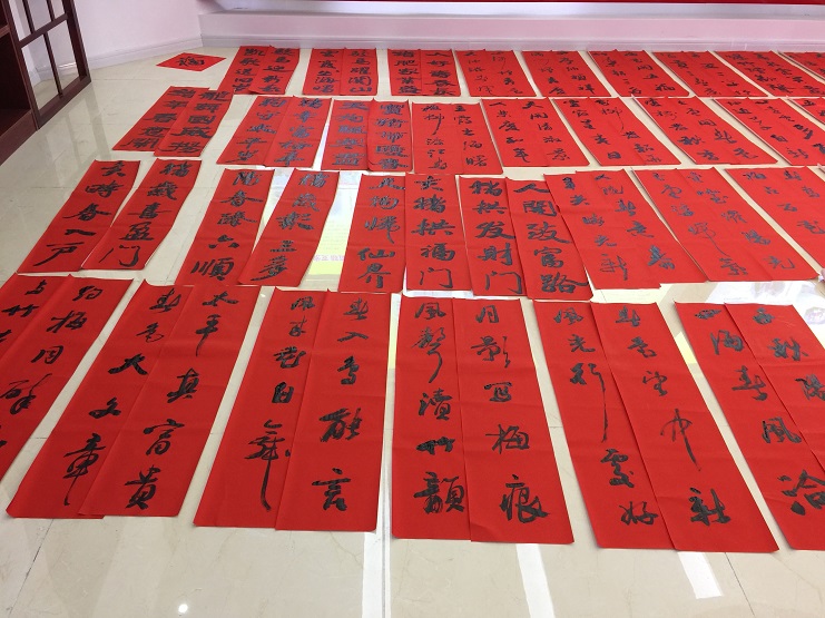 此次活動共邀請了3位書法愛好者為職工免費寫春聯(lián)、贈春聯(lián),紅色的春聯(lián)和熱鬧的人群將活動現(xiàn)場映襯得年味十足。書法愛好者們飽含熱情,擺開書案,攤開宣紙,揮毫潑墨,將真誠的祝福賦諸筆端。宵洋物流的職工們紛紛趕來現(xiàn)場排隊幫忙,互相談論著各副春聯(lián)的寓意,有的根據新年心愿從準備好的春聯(lián)中精心挑選特邀書寫,有的期望書法愛好者為其精心定制現(xiàn)場創(chuàng)作。濃濃的情意、真摯的祝福溢于字里行間,大家拿著一幅幅寓意喜慶,飽含祝福的春聯(lián),喜笑顏開,不停表達著對灌云縣海事局和縣書法協(xié)會的感謝。(宵洋物流 邱利民)