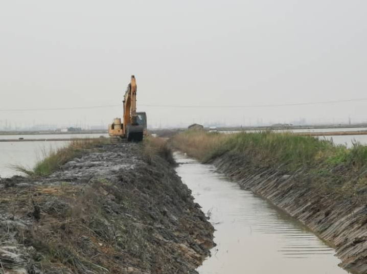 為了保障養(yǎng)殖正常生產(chǎn),營(yíng)造良好的投資環(huán)境。近期,養(yǎng)殖服務(wù)公司配合投資發(fā)展部對(duì)部分淤塞嚴(yán)重,長(zhǎng)滿雜草的海水養(yǎng)殖池塘進(jìn)、排水渠道進(jìn)行疏通。圖為南翼綠化工程公司正在用挖掘機(jī)械理順進(jìn)、排水渠道。(養(yǎng)殖服務(wù))