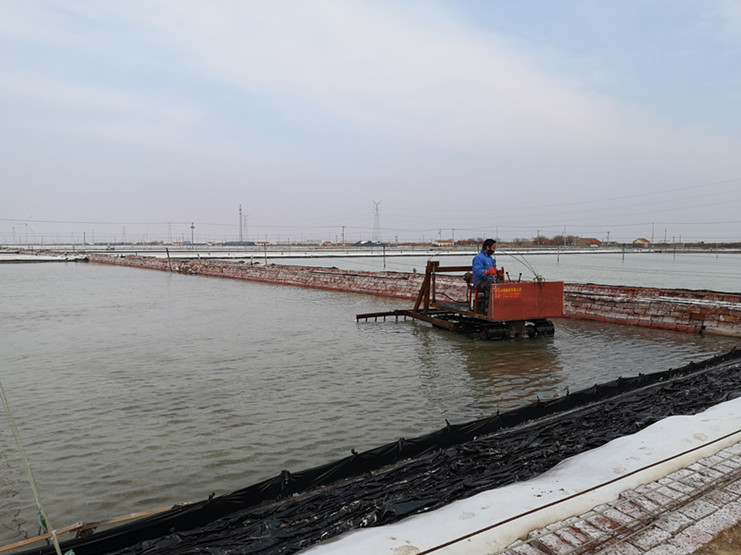 破碴勤、破碴透,才能保證原鹽生產(chǎn)的旺產(chǎn)增收。進(jìn)入2月下旬,雖然受新冠肺炎疫情影響,相關(guān)工作較往年延遲,但新河制鹽分公司科學(xué)組織,嚴(yán)密安排,根據(jù)春季扒鹽節(jié)奏,合理調(diào)配破碴機(jī)械,率先啟動(dòng)原鹽破碴工作。在十班破茬碴現(xiàn)場(chǎng),班組結(jié)晶池內(nèi)熱火朝天,只見一臺(tái)臺(tái)破碴機(jī)快速來回穿梭,正在對(duì)擬春扒格塊進(jìn)行機(jī)械破碴。勞模創(chuàng)新工作室成員、班長(zhǎng)匡洪忠查看破碴的鹽池板后,臉上露出滿意的微笑,他說:“通過近幾年的小改小革,現(xiàn)在機(jī)械破碴格塊只要一個(gè)小時(shí)就全部到位,而且質(zhì)量比人工破碴好,大大地減輕了職工勞動(dòng)負(fù)荷。”