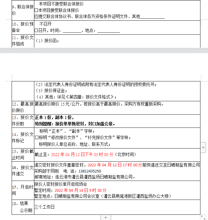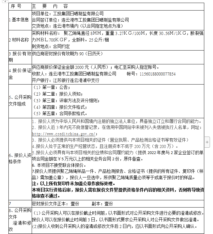 報價保證金接收人:連云港市工投集團(tuán)日曬制鹽有限公司。