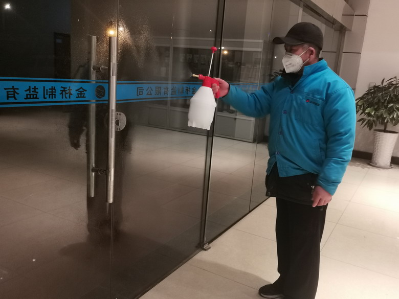 強(qiáng)化工作落實(shí)。按照疫情防控需要,采購(gòu)口罩、酒精、噴壺、洗手液、消毒液、一次性手套、體溫測(cè)量?jī)x等防控物品,發(fā)放給春節(jié)值班人員,要求加班員工和外來人員必須佩戴口罩,經(jīng)測(cè)量后體溫正常方可進(jìn)廠;安排值班人員對(duì)辦公樓出入口、打卡室、外來車輛按要求進(jìn)行消毒,要求對(duì)公司通勤車每天按照要求進(jìn)行必要的消毒,保持員工上下班期間的衛(wèi)生安全。