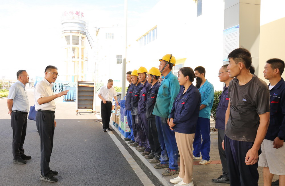 集團(tuán)副總經(jīng)理劉承志來(lái)金橋制鹽公司“送清涼”