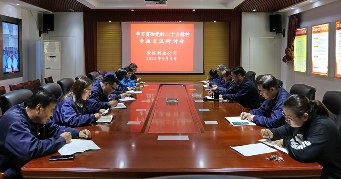 4月4日下午,我公司在四樓黨員活動(dòng)室召開(kāi)學(xué)習(xí)貫徹黨的二十大精神專題交流研討會(huì)。公司黨委副書(shū)記、紀(jì)委書(shū)記、工會(huì)主席曹開(kāi)明主持會(huì)議,各支部、分會(huì)負(fù)責(zé)人和交流人員參加。