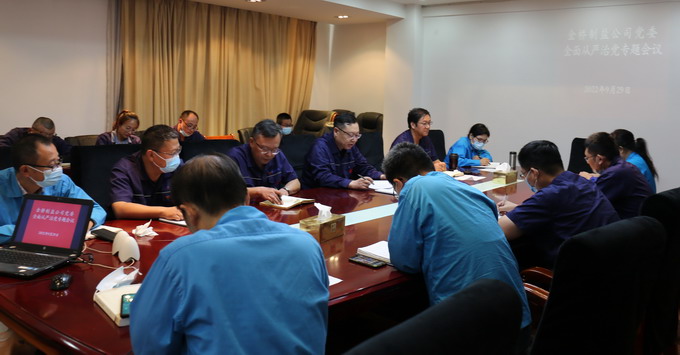 9月29日下午,我公司黨委召開全面從嚴治黨專題會議,黨委副書記、紀委書記、工會主席曹開明主持,公司領(lǐng)導班子成員、各車間單位黨政負責人、各部室負責人參會。