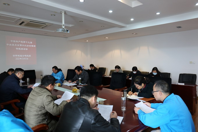 11月15日上午,我公司召開黨委理論中心組學(xué)習(xí)會(huì),專題學(xué)習(xí)中國(guó)共產(chǎn)黨第十九屆中央委員會(huì)第六次全會(huì)精神。會(huì)議由公司黨委書記、董事長(zhǎng)、總經(jīng)理朱桂玉主持,公司黨委班子及其他黨委理論中心組成員參加了學(xué)習(xí)會(huì)。