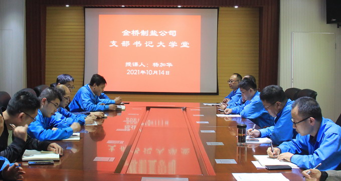 10月14日下午,我公司黨委在四樓黨建活動室組織開展“支部書記大學堂”活動。雪花鹽車間黨支部副書記楊加華以“學黨史守初心 充分發(fā)揮戰(zhàn)斗堡壘作用”為主題,結合車間工作實際,為各支部黨員干群上了一堂生動的黨課。通過此次活動的開展,引導廣大黨員干群學習百年黨史,牢記初心使命,進一步堅定信心,鼓足干勁,齊心協(xié)力推動全年目標順利實現。(金宣)